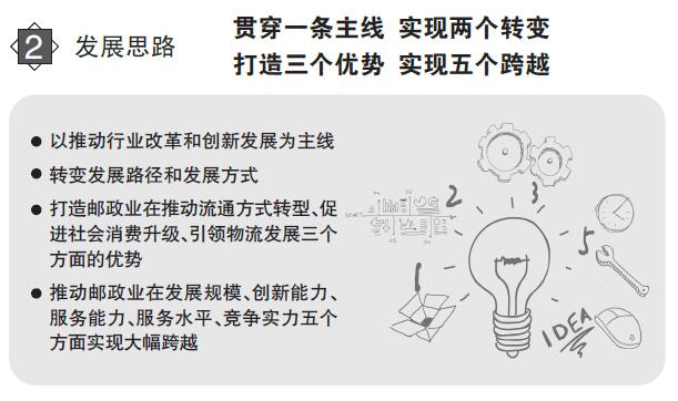 三个全面 明确行业发展方向 问:《规划》对于统筹引领邮政业持续健康发展具有重要意义,行业未来发展的路径、方向都体现在了《规划》中。那么,在编制过程中,如何实现让《规划》发挥引领作用? 答:在《规划》的编制过程中,我们着力做到了“三个全面”,以此将行业发展和国家经济社会发展全局紧密地结合在一起,从而发挥《规划》的引领作用。 一是全面贯彻新理念新战略。《规划》将贯彻“四个全面”战略布局作为基本指导思想,明确了“全面建成与小康社会相适应的现代邮政业”的总体目标,部署了“深化行业改革”的重点任务,提出了“推进法治邮政建设”和“提高党建工作水平”等保障措施。《规划》以“五大发展理念”为指引,明确了推动行业创新发展的基本路径,指明了发展理念、业务领域、服务模式创新的具体方向,提出了推动邮政普遍服务均等协调发展、快递城乡普惠、建设绿色邮政、支持跨境寄递发展、服务“一带一路”建设等具体目标、任务和工程。同时,设置了新增就业岗位的具体指标,提出网络设施共享、资源集约利用的任务,并将共享作为行业核心价值理念之一。 二是全面落实国家重大决策部署。《规划》立足服务经济社会发展全局谋划邮政业发展,着力发挥邮政业在稳增长、促改革、调结构、惠民生中的积极作用。《规划》全面贯彻国家“十三五”规划纲要涉及邮政业的内容,对提升邮政服务水平、加强快递设施建设、强化邮政安全管理等部署进行实化细化,明确任务措施、安排建设工程。《规划》系统落实国务院促进快递业发展意见,将“互联网+”作为行业发展的整体战略,把培育壮大快递企业作为重点目标,协调推进快递“向西向下向外”、“上车上船上飞机”和寄递渠道安全监管“绿盾”工程。《规划》做到国家有部署、行业抓落实。 三是全面描绘行业发展蓝图。《规划》提出的奋斗目标是:到2020年,全面建成与小康社会相适应的现代邮政业,推动我国由邮政大国向邮政强国迈进。基于此,《规划》提出推动行业发展的基本思路是:贯穿一条主线,实现两个转变,打造三个优势,实现五个跨越。就是以推动行业改革和创新发展为主线,转变发展路径和发展方式,打造邮政业在推动流通方式转型、促进社会消费升级、引领物流发展三个方面的优势,推动邮政业在发展规模、创新能力、服务能力、服务水平、竞争实力五个方面实现大幅跨越。 发展仍是邮政业面对的基本问题,行业只有持续快速发展,才能满足不断增长变化的服务需求。《规划》在发展规模方面提出“上百、过千、超万、破十万”的目标。具体来讲,就是“十三五”期间,全行业累计新增就业岗位100万个以上;到2020年,邮政行业年服务用户超过千亿人次,年行业业务总量和收入超越1万亿元,年支撑网络零售交易规模突破10万亿元。同时,《规划》明确了创新能力、服务能力、服务水平、竞争实力等方面的目标,着力推动行业提升发展质量和水平。 三个突出 呈现行业改革路径 问:制定行业规划的目的在于统筹引领行业发展,为市场主体的行为提供导向,为相关管理部门履职提供指引,为行业明确共同的发展愿景。请问在这方面,《规划》呈现了哪些亮点呢? 答:“十二五”时期,行业实现了快速发展。但与此同时,一些突出的矛盾和问题也逐步显现出来。推动行业持续健康发展,要有新视角,要聚焦问题,要改革创新。此次发布的《规划》在这三个方面进行了回应。 一是突出新定位。《规划》开宗明义,结合国务院赋予邮政业相关新的功能定位,明确提出“邮政业是国家重要的社会公用事业,是推动流通方式转型、促进消费升级的现代化先导性产业,在国民经济中发挥着基础性作用”。 二是突出问题导向。《规划》坚持问题导向,从用户服务需求、产业发展规律、可持续发展等方面,梳理出邮政业发展面临的突出问题和短板,包括:快递发展质量不高、邮政普遍服务亟待提质创新、行业基础薄弱、发展模式单一、区域发展不均衡、寄递渠道安全压力增大等。针对这些核心问题,聚焦重点、综合施策、精准发力,《规划》提出了一系列解决问题、化解矛盾、补齐短板的任务措施和建设工程。比如:引导企业从价格竞争向服务品质竞争转变,实施品牌和差异化发展战略;推动普遍服务的快捷化发展,改进邮件收寄和投递方式,提升服务水平;推进分拨中心、集散枢纽建设;着力服务先进制造业、跨境电商和现代农业,发展工厂快递、越洋快递和农商快递;支持西部地区改善基础设施,提升西部地区服务网络的均衡度和稳定性;加强安全监管,全面落实收寄验视、实名收寄、过机安检三项制度。 三是突出改革创新。《规划》以“发展出题目,改革做文章,创新求突破”为基调,将“推动行业改革和创新发展”作为发展主线。《规划》提出,推进行业供给侧结构性改革,完善邮政市场环境和机制,扩大有效和中高端的服务供给;深化邮政行政审批制度改革,优化行政流程,简化快递业务经营许可程序,精简分支机构和末端网点备案手续;推动邮政企业深化改革,增强国有企业的活力和影响力,推动快递企业建立现代企业制度,完善运营机制,有效利用资本市场发展壮大。《规划》提出,将创新贯穿于行业发展的各环节,推动发展理念由产品思维向用户思维转变,促进市场开放、资源共